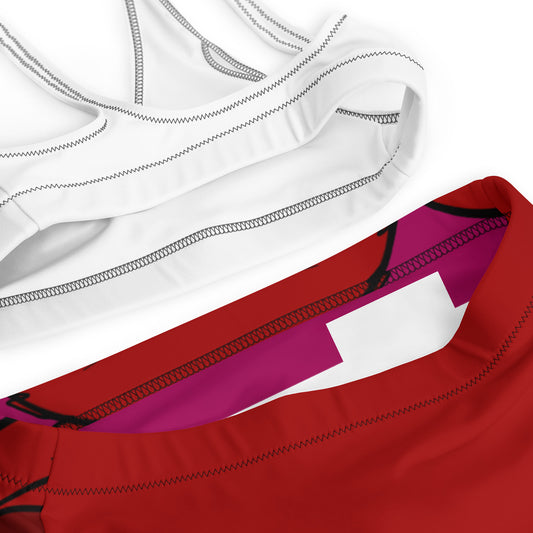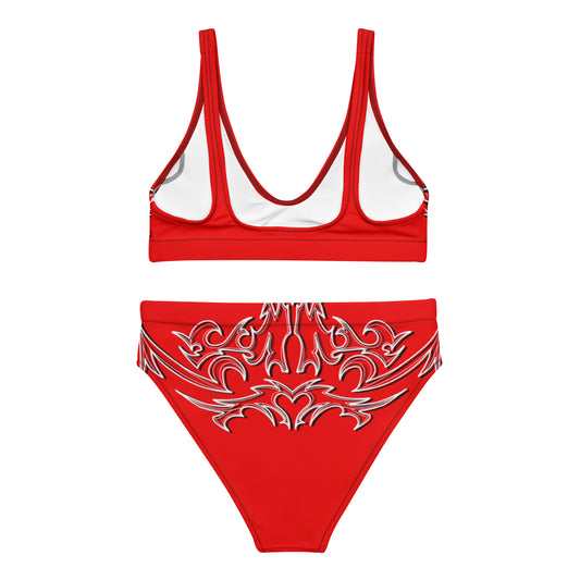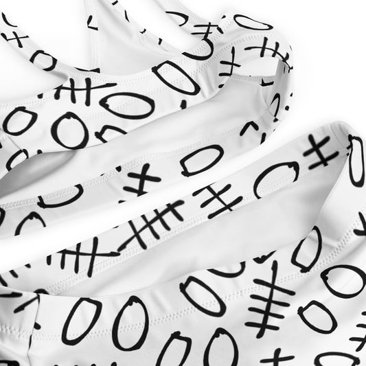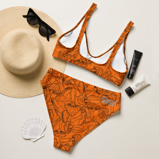 High-Waisted Bikini. The top can be put on over the head and doesn't have and adjustble straps. The item's pad are removable for extra comfort and verslity.